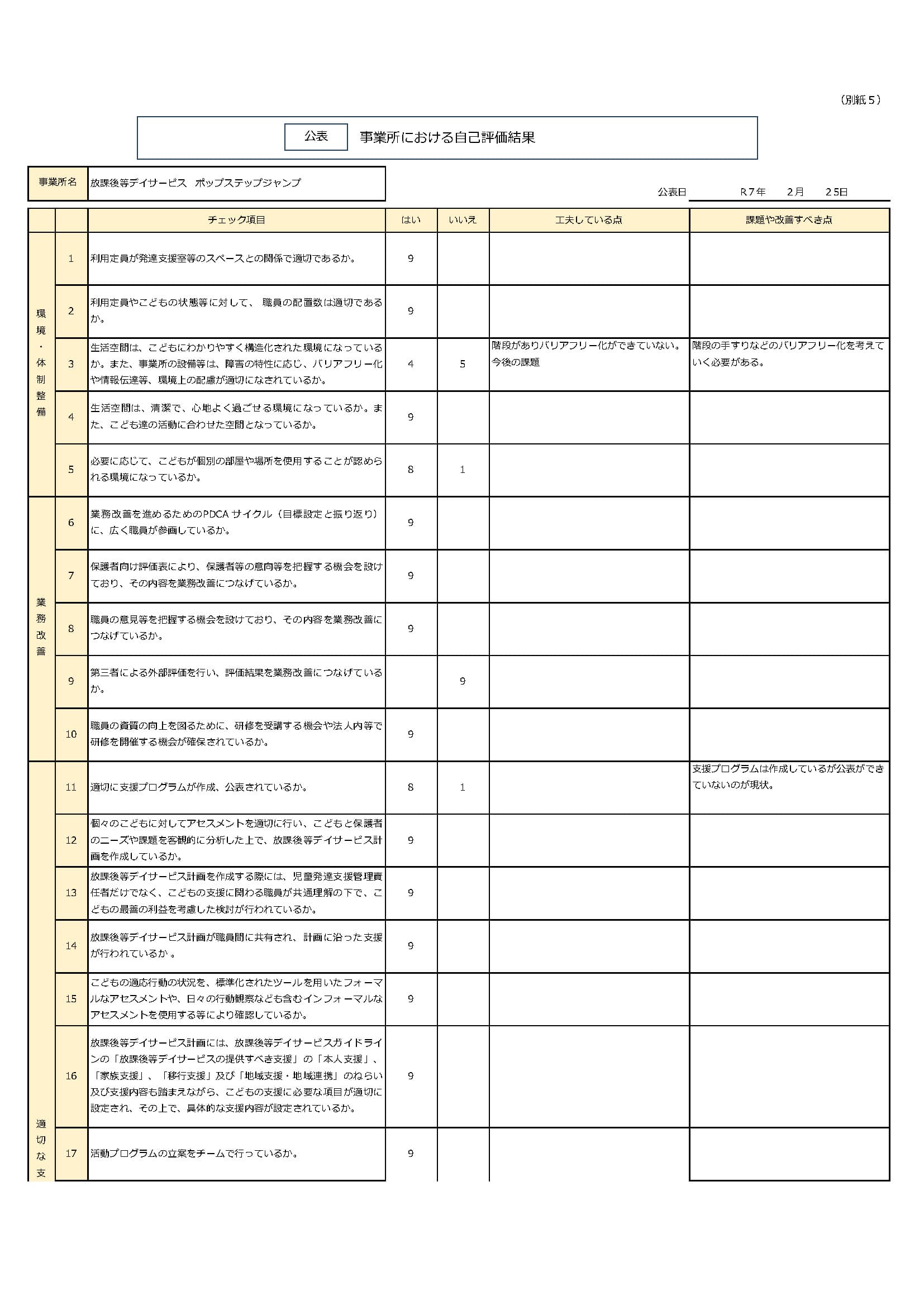 株式会社未来・プロジェクト 児童発達支援自己評価・保護者評価