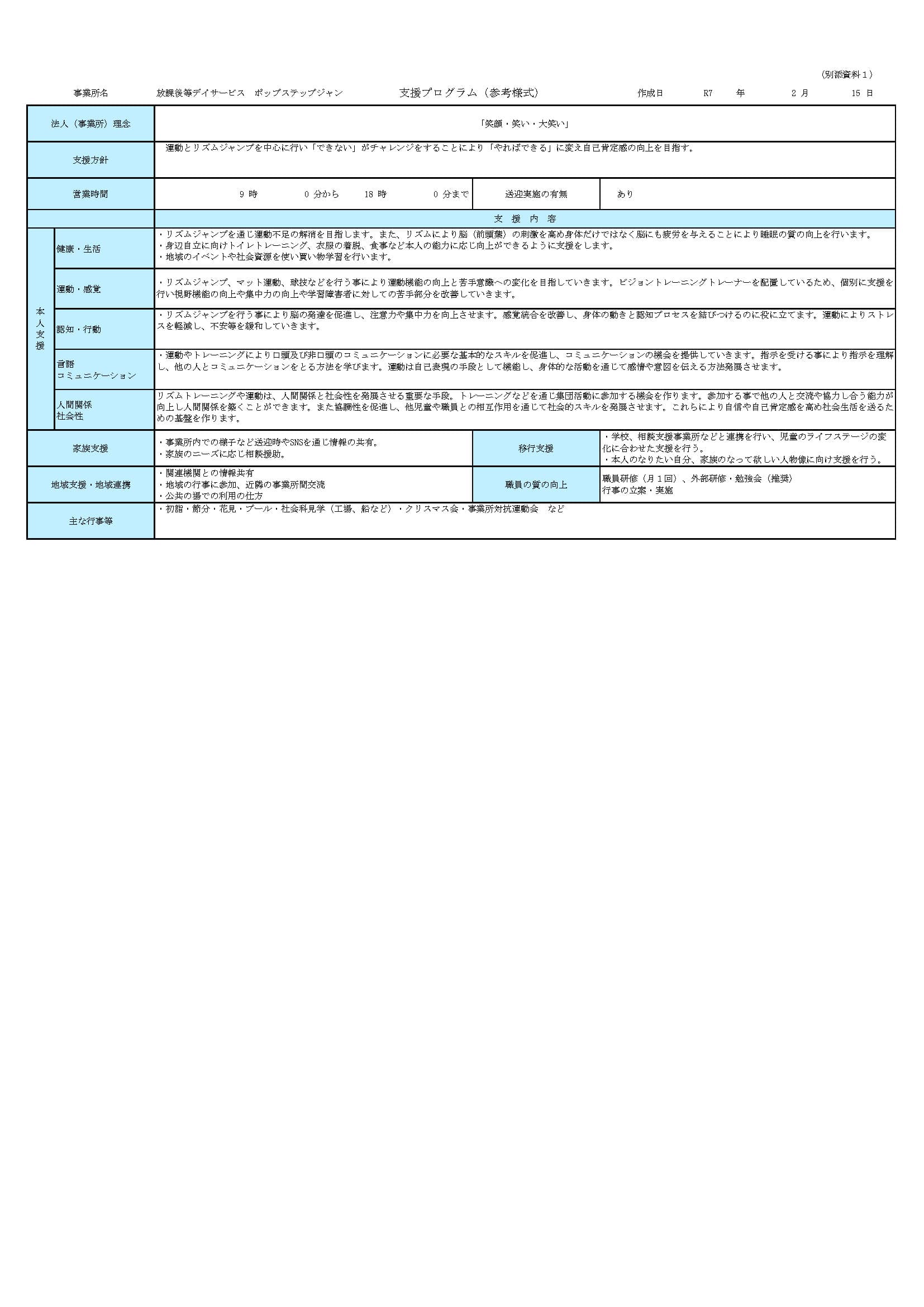 | 事業内容 | 幼稚園、保育園正課体育指導派遣事業 リズムジャンプ運動クラブ STARアカデミー 障害児通所支援事業 |