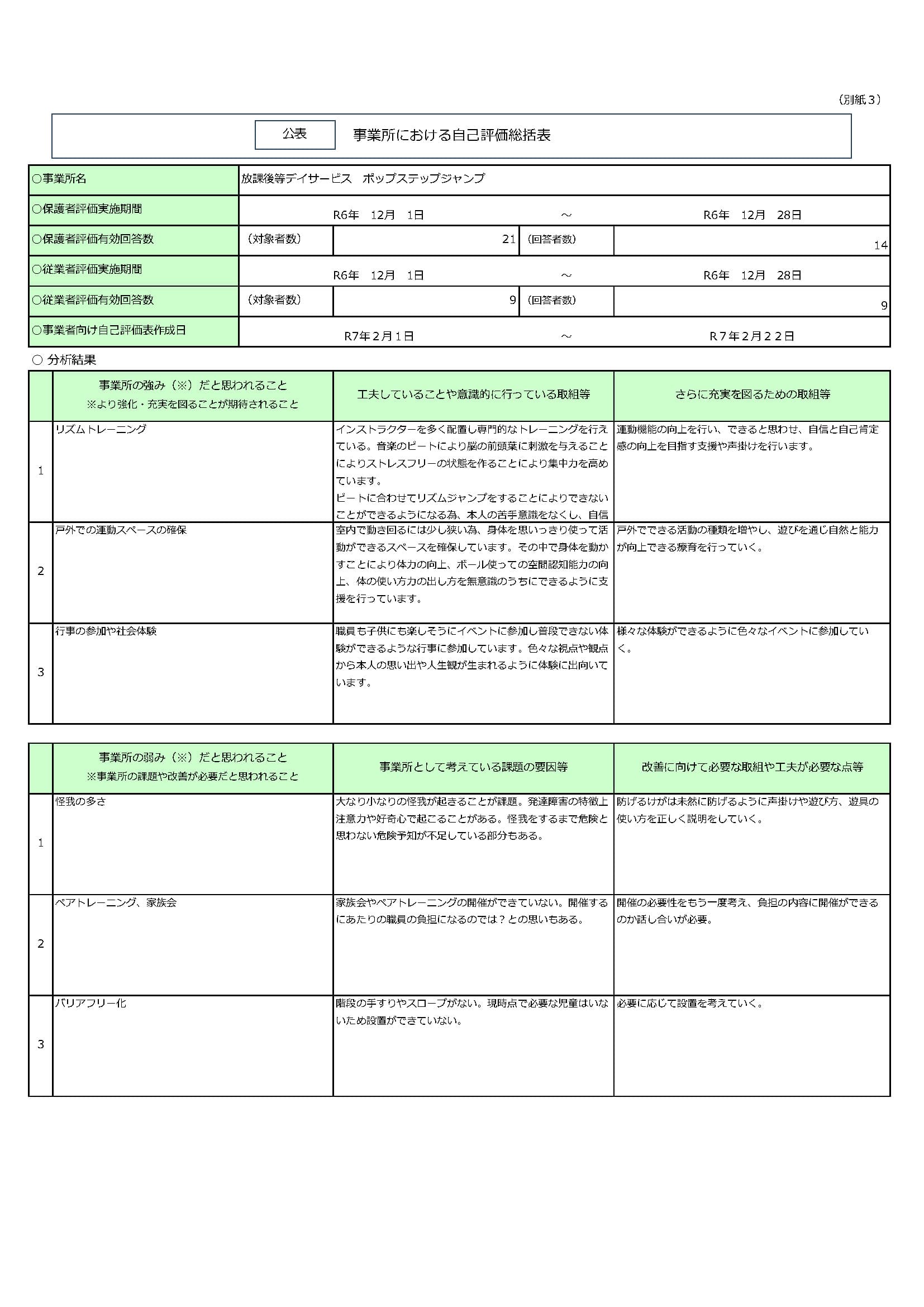 株式会社未来・プロジェクト 児童発達支援自己評価・保護者評価